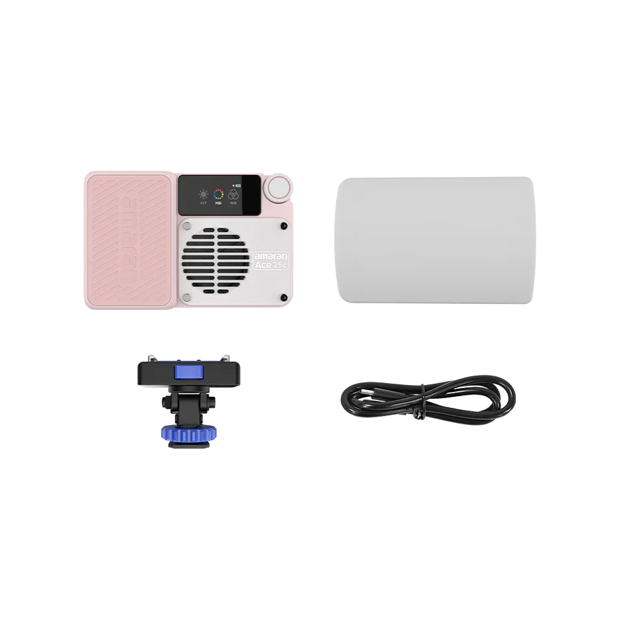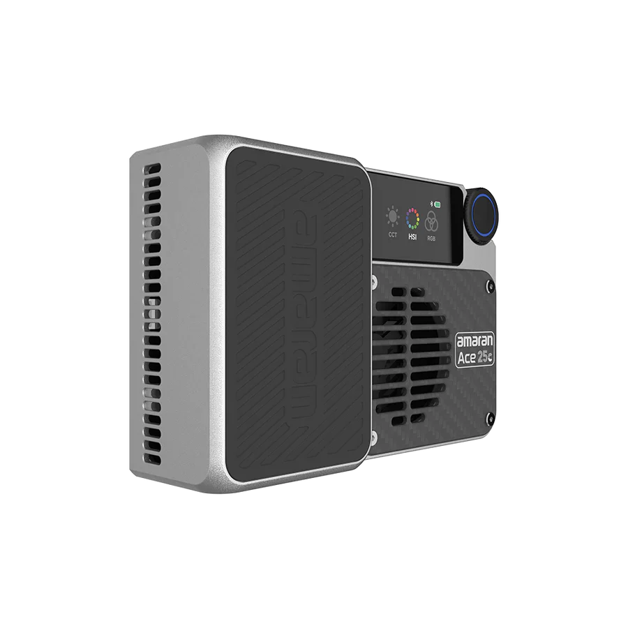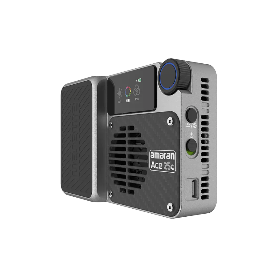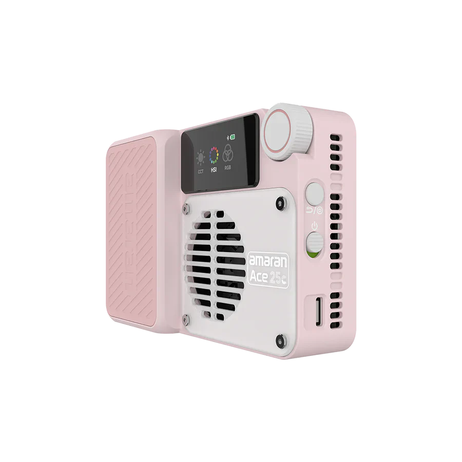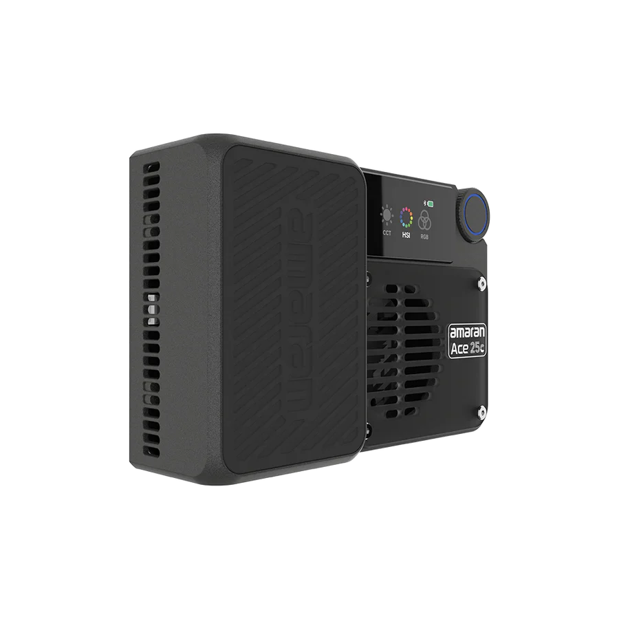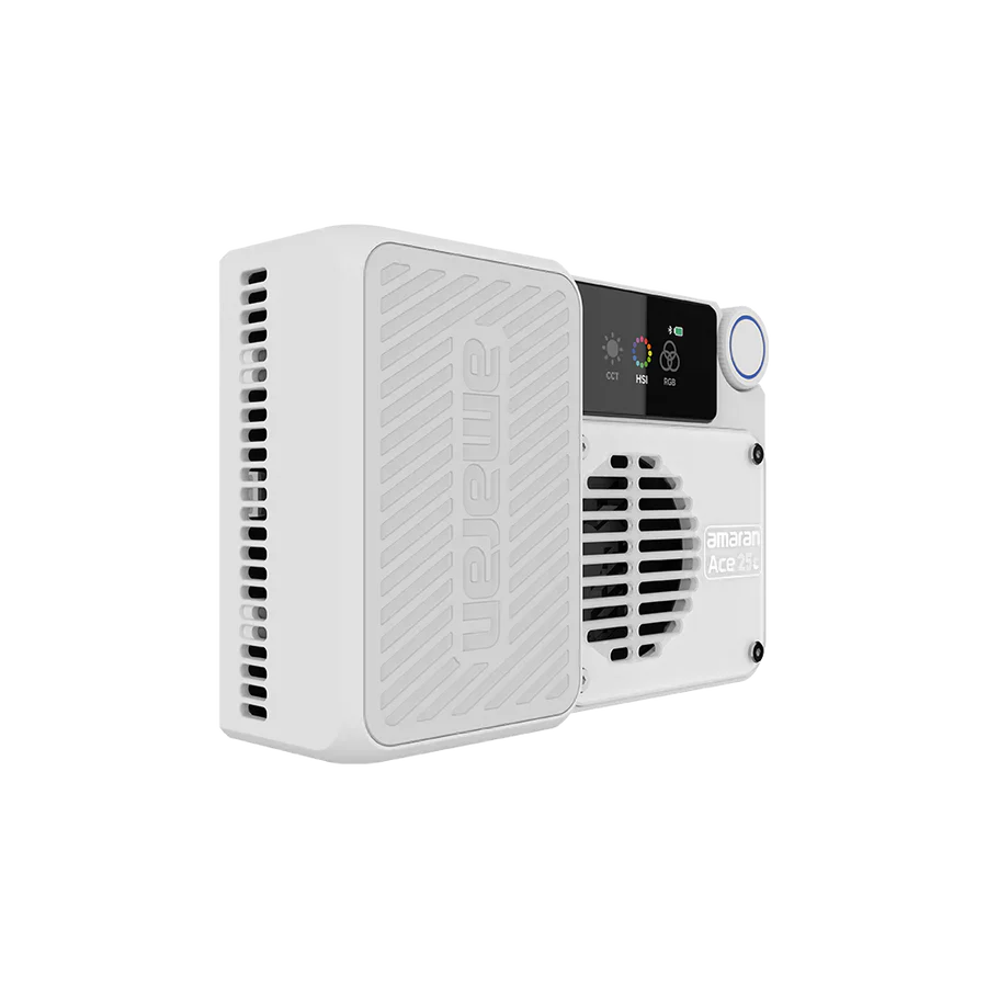 The light's internal, rechargeable battery recoups 90% of its charge in just 40 minutes with the included USB-C charging cable, achieving a full recharge in approximately 90 minutes. The included lock-to-cold shoe adapter makes the light easily mountable on any camera with a shoe mount, and a 1/4"-20 thread on the bottom of the fixture allows mounting on most light stands. The Ace 25c's magnetic front accessory mount accepts modifiers like the included dome diffuser, while a back magnetic silicone pad allows the light to be mounted on any magnetic surface.