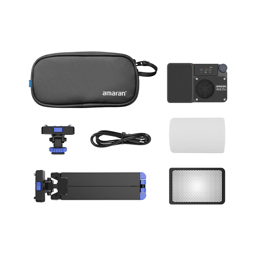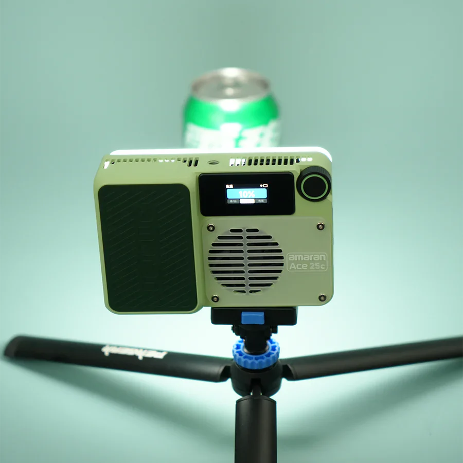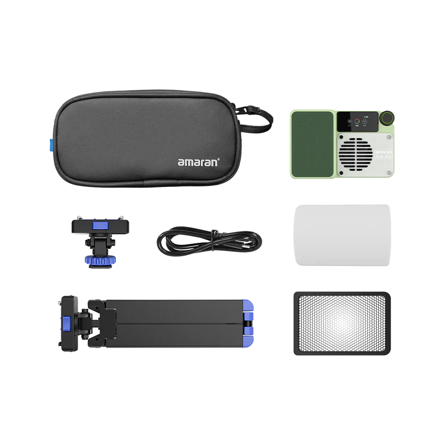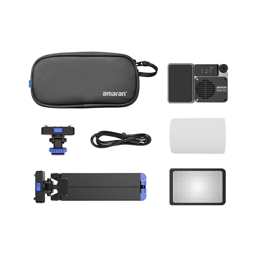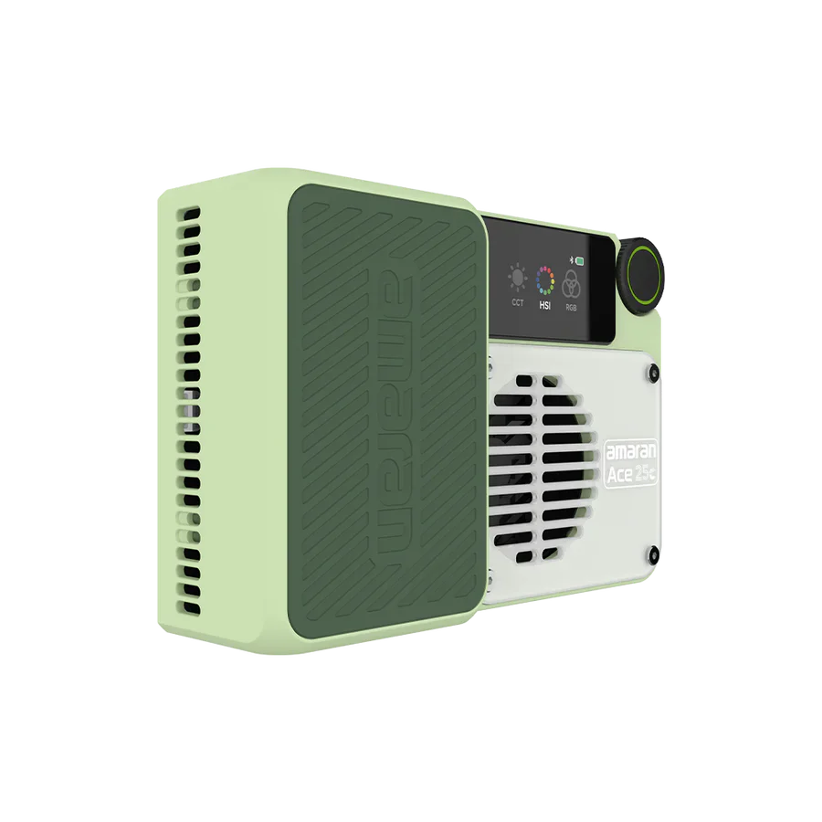 The light's internal, rechargeable battery recoups 90% of its charge in just 40 minutes with the included USB-C charging cable, achieving a full recharge in approximately 90 minutes. The included lock-to-cold shoe adapter makes the light easily mountable on any camera with a shoe mount, and a 1/4"-20 thread on the bottom of the fixture allows mounting on most light stands. The Ace 25c's magnetic front accessory mount accepts modifiers like the included dome diffuser, while a back magnetic silicone pad allows the light to be mounted on any magnetic surface.