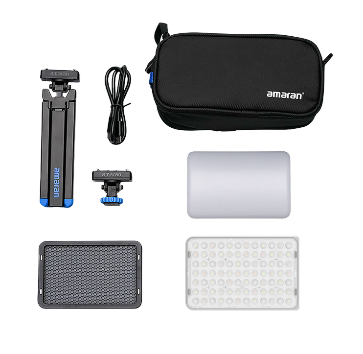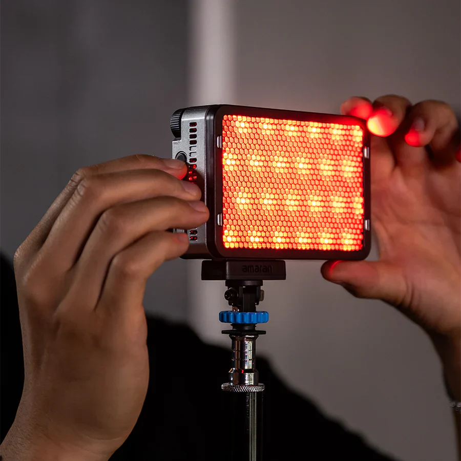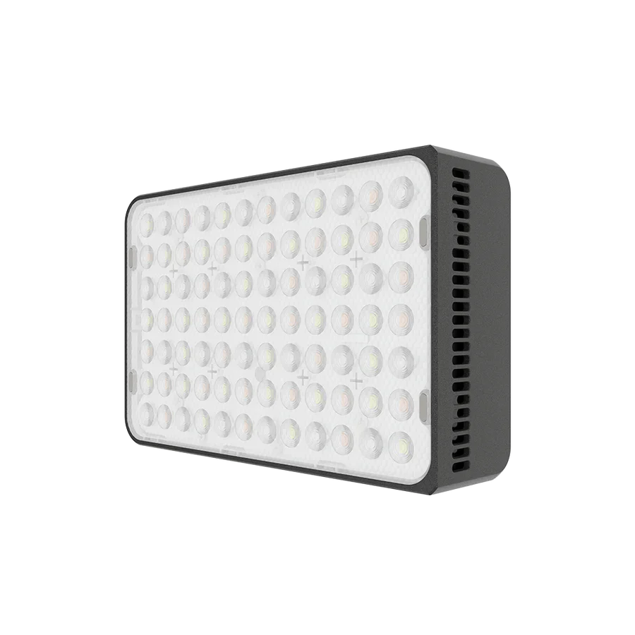 Bringing best-in-class brightness to on-the-go, camera-mounted light setups, the charcoal Ace 25c RGB LED Light Panel from amaran is a versatile, creator-friendly light source that sets up quickly and travels light. When operating in Boost mode, the light's 32W output notches 1171 lux at 3.3' and 5600K, with approximately 50 minutes of runtime at this maximum setting. The light also clocks upwards of four hours and 40 minutes of runtime in its low-power Silent mode. The Ace 25c has a 360° color control in both RGB and hue, both saturation and intensity modes, and a CCT color temperature range of 2300-10,000K with a green/magenta adjustment option. In all its modes, the Ace 25c achieves a high color accuracy of 95 in both CRI and TLCI ratings.
