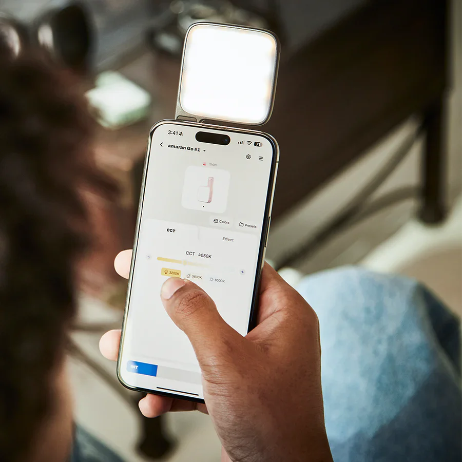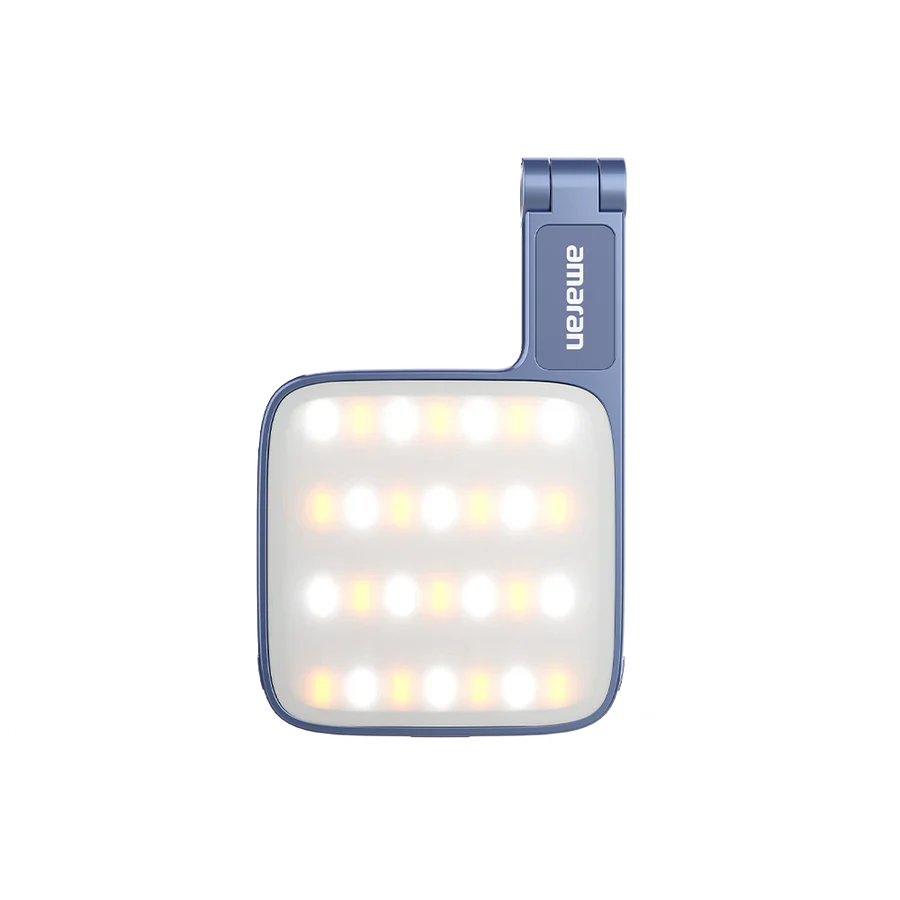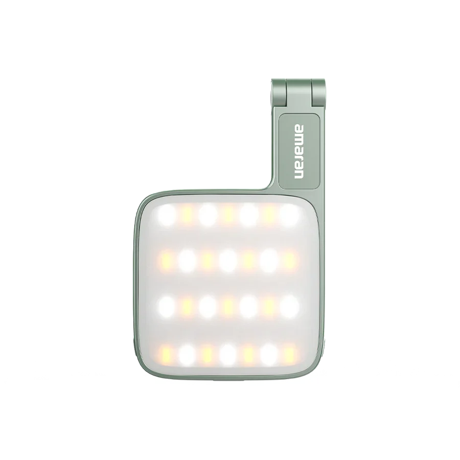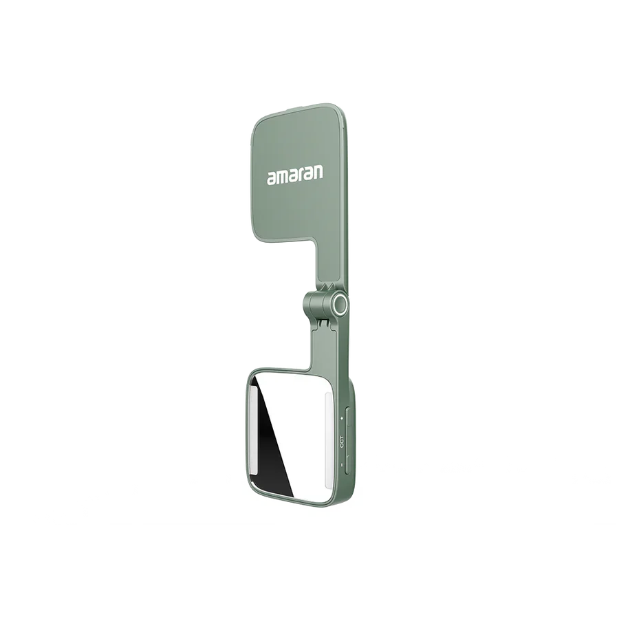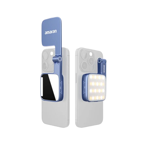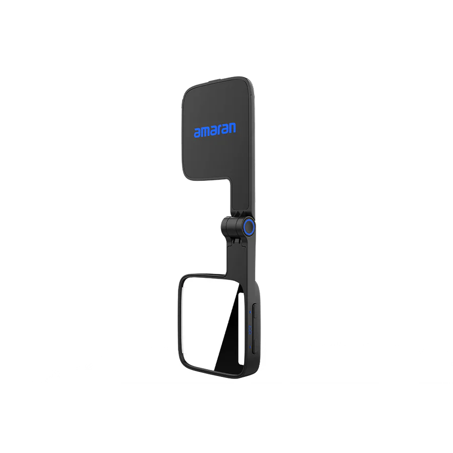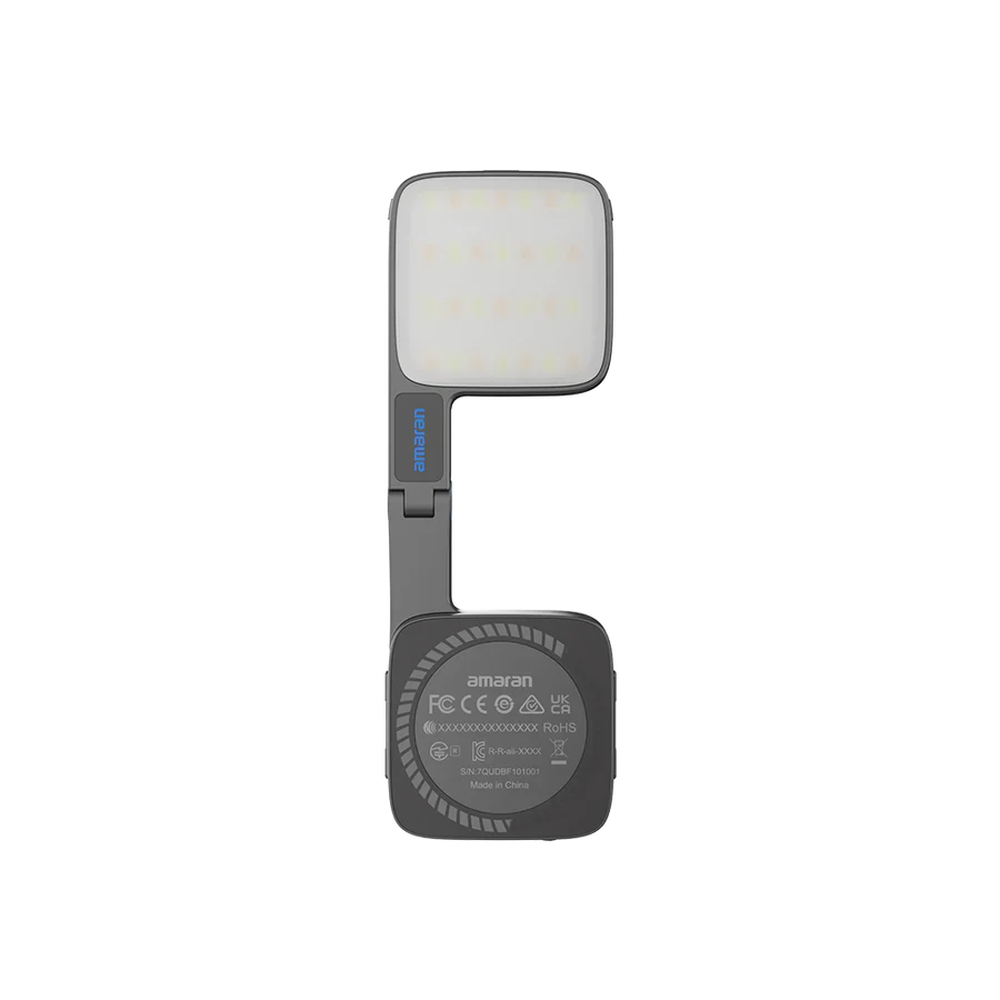 The compact and convenient GO in Charcoal from amaran is a mini folding LED light for use with your smartphone in a MagSafe case. It provides adjustable color temperature and brightness to help create your desired look and is easily controlled using the free app for iOS or Android. It has a portable form factor that fits in your pocket. The Go is an inexpensive way to improve the quality of your content. It offers fast and reliable attachment to MagSafe-enabled phones, and its versatile flip design provides seamlessly switching between front and rear camera setups. It has a built-in mirror and makeup light for quick touch-ups and a compact folding design. The color scheme matches popular phone styles.