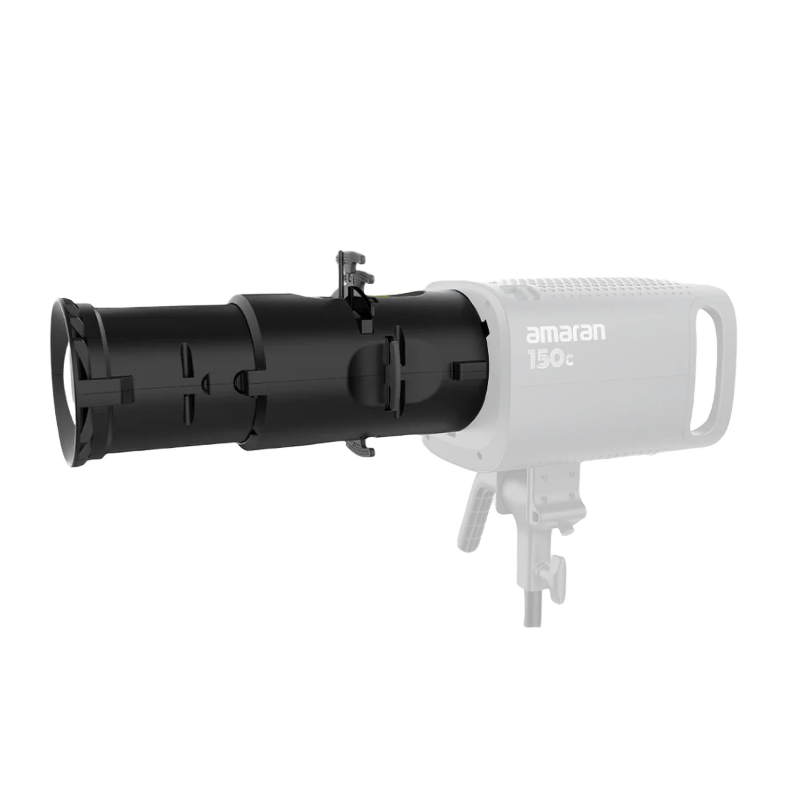 Featuring a universal Bowens accessory mount, the Spotlight SE is compatible with the brand's 150c and 300c full-color LED monolights. Your fixture can be easily magnified, bringing a new level of flexibility and enhanced output from it. This modifier also works with other Bowens mount point-source lights with up to 300W of power output, ranging from the amaran COB 60d S to the Aputure LS 300x. The Spotlight SE has a durable all-metal housing and this kit is packed in a case to storage and protect the housing, lens, and included accessories.