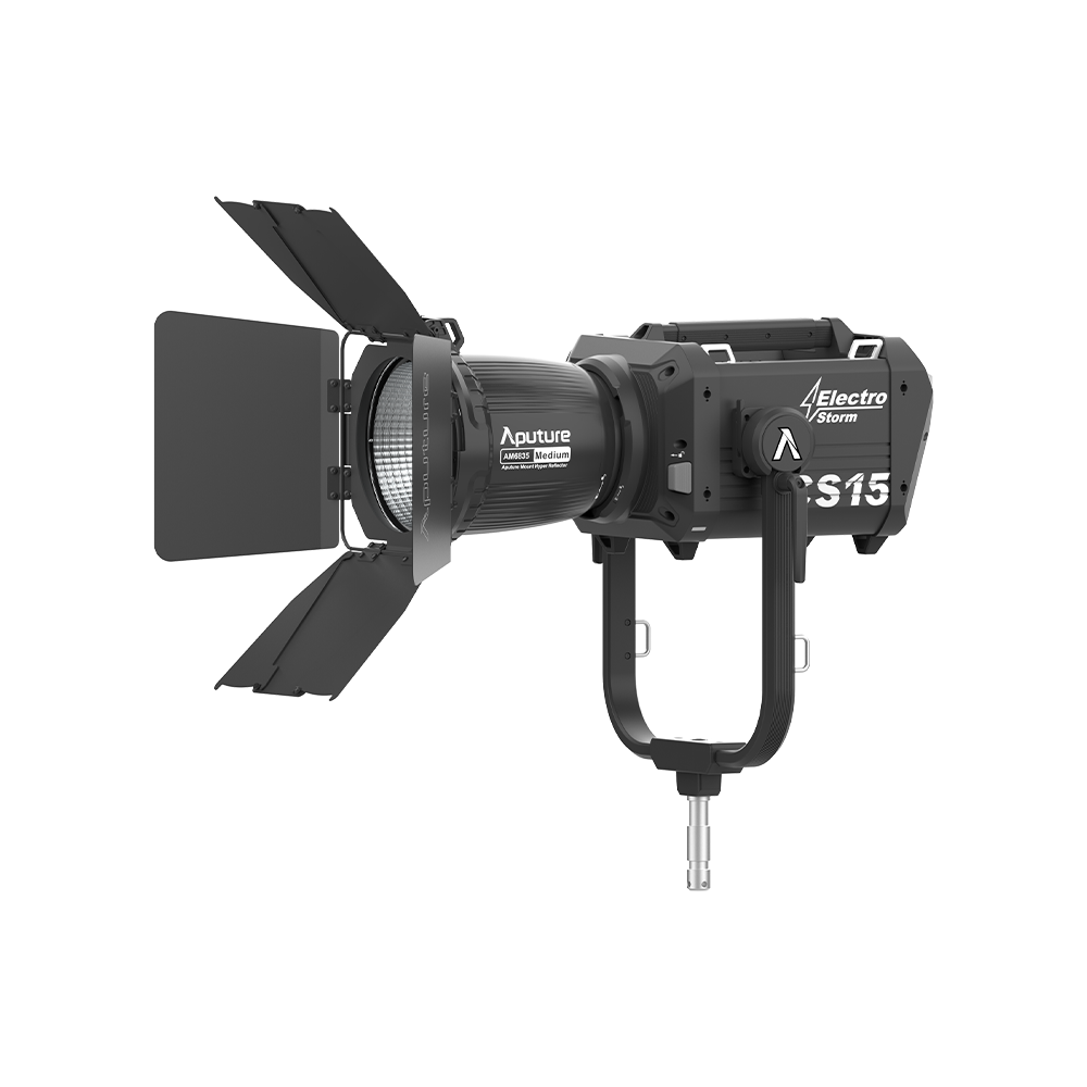 The Electro Storm family features the Dual Accessory Mount (Bowens and auto-calibrating Aputure Mount). Use Bowens modifiers and add spot/flood and pan/tilt control from across the stage with the Motorized Yoke and F14 Motorized Fresnel.