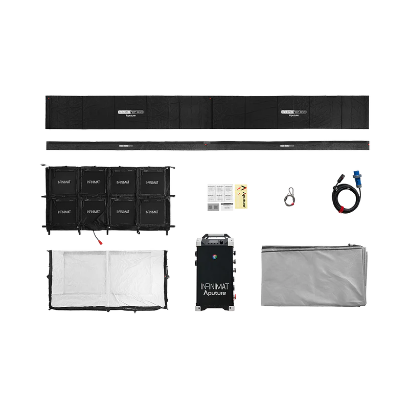 The INFINIMAT Tunable Color Light Mat with Inflatable Airbag Aputure is a 20 x 20' modular, full-color RGBWW LED light mat that offers multiple mounting and rigging methods. It includes a 1600W control box that can be powered via AC power and controls multiple INFINIMAT units. The light boasts a 2000 to 10,000K CCT, 96 CRI, and 97 TLCI. A skirt and inflatable softbox are included in the package.