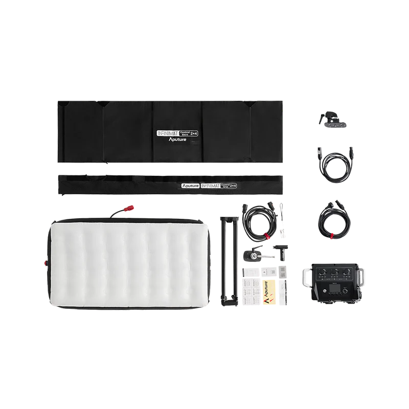 The INFINIMAT Tunable Color Light Mat with Inflatable Airbag from Aputure is a 4 x 4' modular, full-color RGBWW LED light mat that offers multiple mounting and rigging methods. It includes a 1600W control box that can be powered via AC power and controls multiple INFINIMAT units. The light boasts a 2000 to 10,000K CCT, 96 CRI, and 97 TLCI. A skirt and inflatable softbox are included in the package.