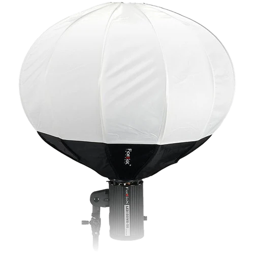 Illuminate entire rooms with this Lantern Globe Softbox from FotodioX. With a partial silver reflective interior, this white globe is ideal for creating soft and even light that spreads in all directions. It comes equipped with a Speedotron speed ring, making it compatible with Speedotron Black Line and Brown Line strobes. Made of a heat-resistant fabric with sealable venting, the softbox can be used with strobes and continuous lights including hot lights. A push down clip system makes set up and tear down quick and easy, and a carrying bag is included to simplify transport.