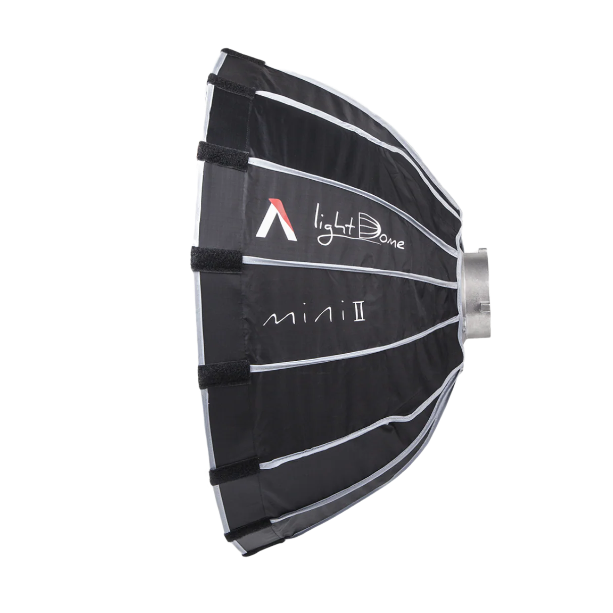 Designed for light weight and portability, the 21.5" Light Dome Mini II is compatible with the Aputure Light Storm 120 and 300 Series LED lights, and in fact, any LED light with a Bowens front accessory mount. The sturdily built modifier has 16 wear-resistant Hadfield steel rods that form a circular field of light that yields wide coverage and pleasing, natural-looking catchlights in the eyes of your subject, while maximizing output with its reflective silver interior. To provide further control, Aputure includes a 40° fabric grid, which eliminates spill light but most importantly, gives you directional control of the soft source for selective lighting or dramatic effects. A filter holder is included as well, for creative color.