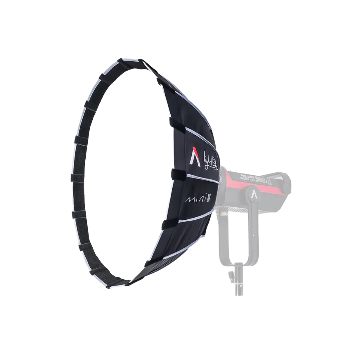 Armed with an upgraded dual-sided and foldable quick release mechanism, the 22.8" Light Dome Mini III from Aputure accelerates the set-up time for its 16-sided, point source-softening circular softbox, bringing professional, portrait-ready light to any shoot in mere seconds. Optimized for lightweight portability, the parabolic, hexadecanol structure of the Light Dome Mini III is fortified by 16 durable steel support rods, which now snap into place with the downward press of its widely-compatible Bowens Mount bracket, saving valuable time on set. Its shape also promotes uniform light output distribution for soft, even light on any subject. The modifier features a silver interior to maximize the light output and comes with a front diffusion cloth, a gold/silver inner baffle, and a 40° fabric grid for further light-shaping capabilities.