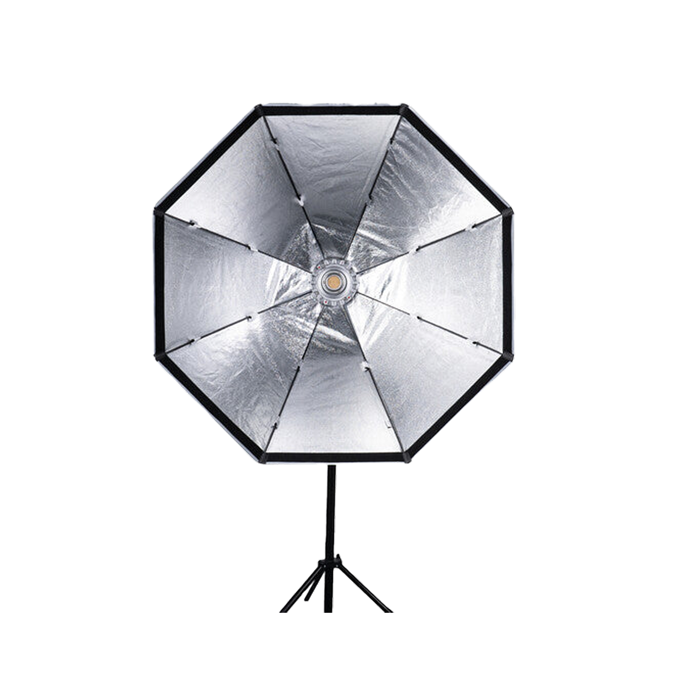 The OctaDome 120 features a silver interior to maximize light output, and includes a foldable 45° grid to add directional output and reduce light spill. The set includes a Bowens-type speed ring, but is also compatible with other types of standard speed rings.