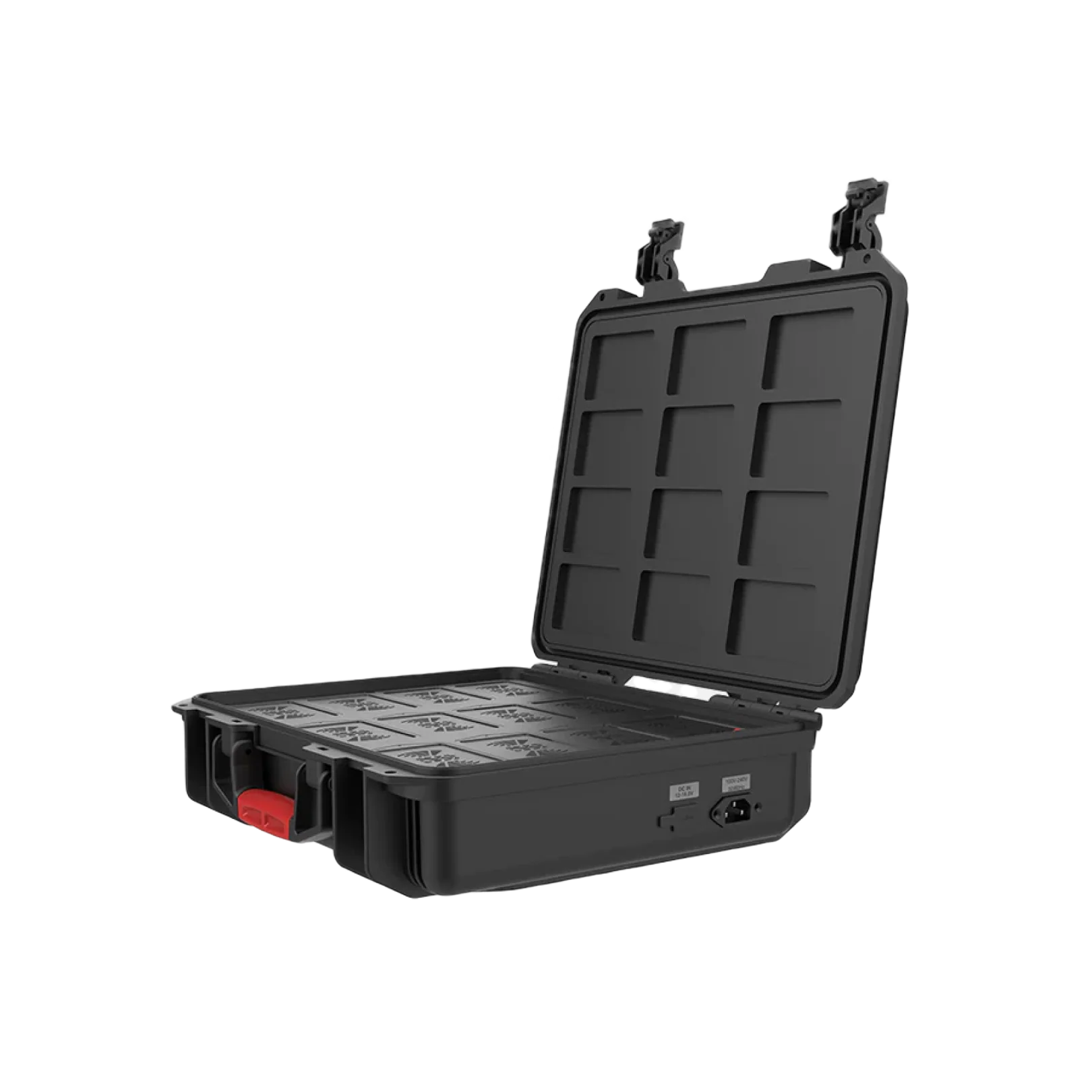 The MC 12-Light Wireless Charging Case from Aputure is a robust hard-shell carrying case to store and protect up to 12 Aputure RGBWW MC lights. The magnet pads absorb and keep every Aputure MC in a safe place during extended transportation. The high-density foam keeps the safety of fixtures even in rough transportation conditions. A built-in side drawer stores power cables, USB cables, and four sets of diffusers and ball heads. It also features two 5V/2A USB ports to charge the lights and built-in AC and DC plugs to power the case.