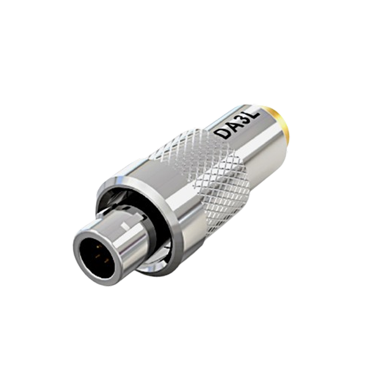 The Deity Microphones DA3L is a Microdot to 3-pin LEMO adapter designed to interface a Microdot-equipped microphone with a wireless microphone transmitter outfitted with a 3-pin LEMO jack.