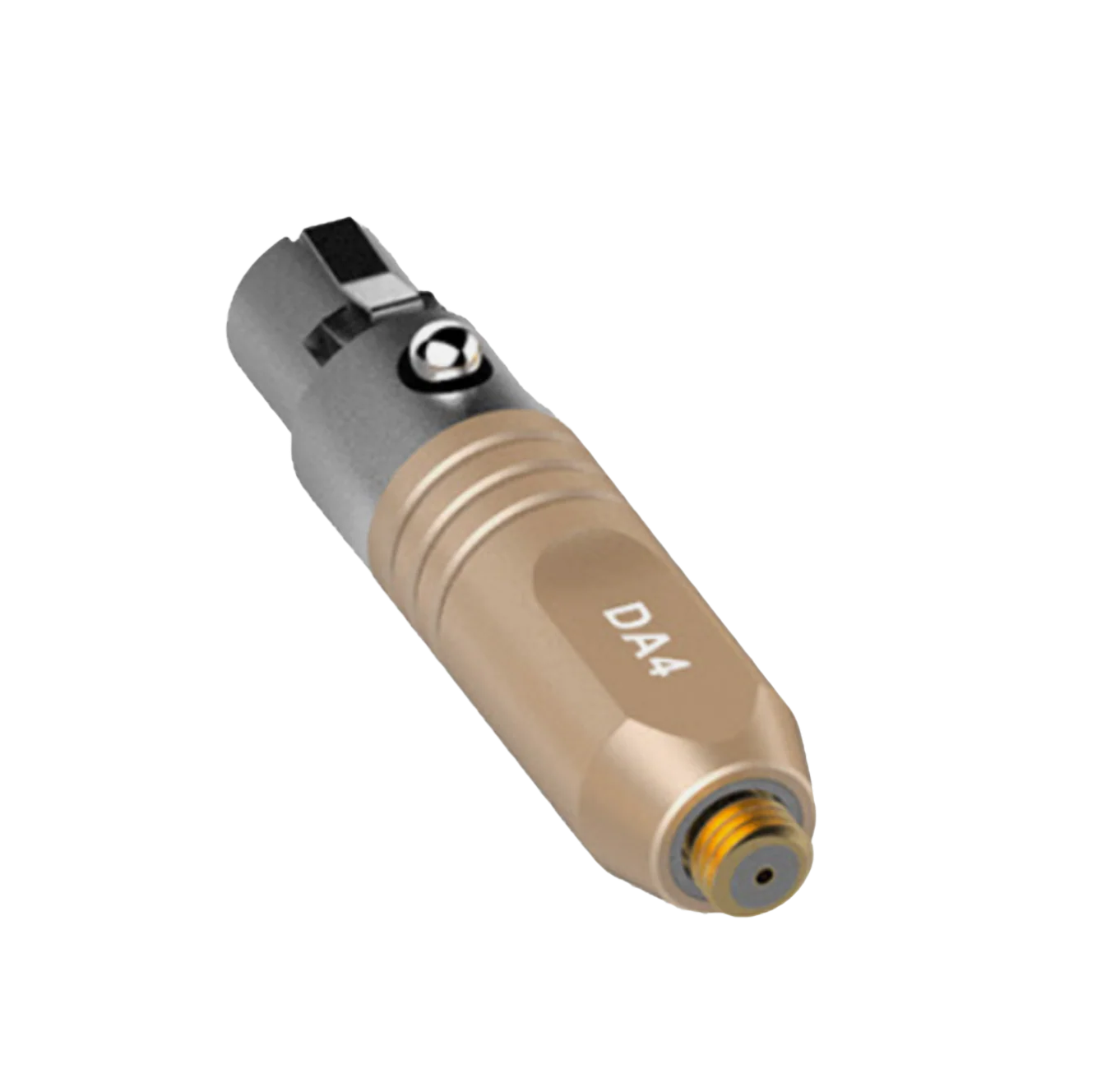 The beige Deity Microphones DA4B is a Microdot to TA4F adapter designed to interface a Microdot-equipped microphone with a wireless microphone transmitter outfitted with a TA4F jack. Simply connect the Microdot output of your microphone (available separately) to the DA4B's female Microdot input, then plug the adapter into your qualified transmitter (available separately). The DA4B is compatible with a variety of wireless microphone transmitters from Shure, Anchor Audio, Beyerdynamic, Line 6, and TOA. Lightweight and compact, the convenient in-line design of the DA4B makes it well suited for use in video production, ENG, conferences, and houses of worship.