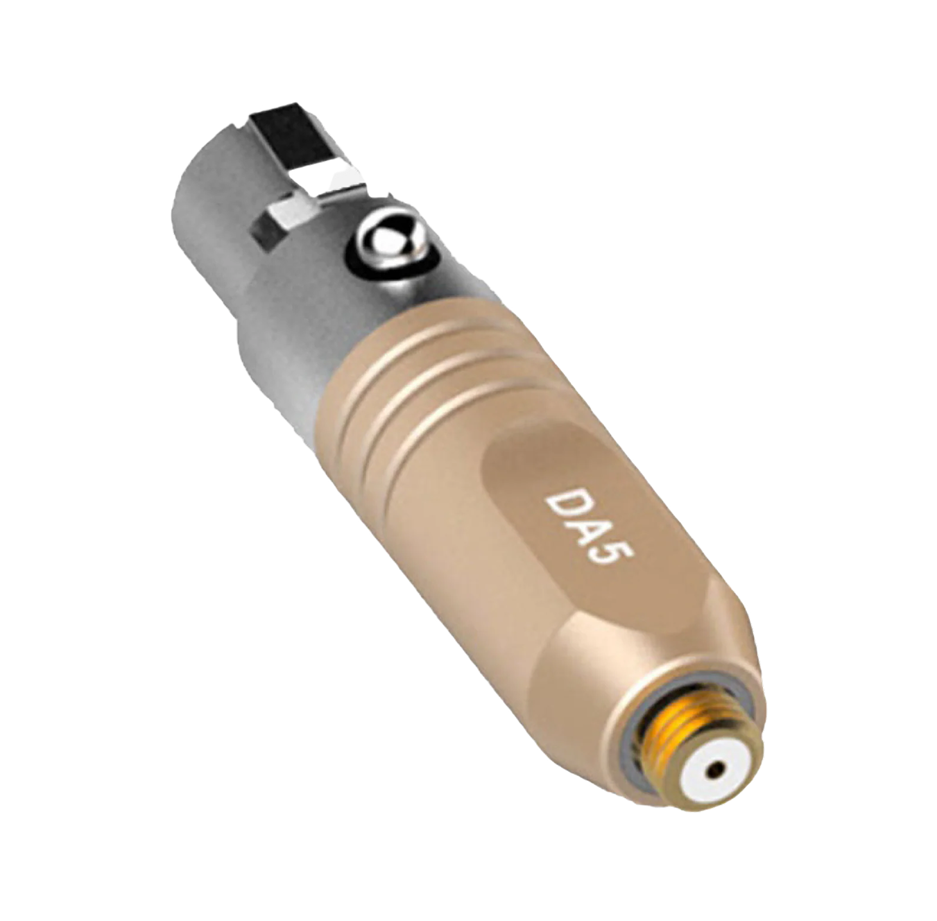 The beige Deity Microphones DA5B is a Microdot to TA5F adapter designed to interface a Microdot-equipped microphone with a wireless microphone transmitter outfitted with a TA5F jack. Simply connect the Microdot output of your microphone (available separately) to the DA5B's female Microdot input, then plug the adapter into your qualified transmitter (available separately). The DA5B is compatible with a variety of wireless microphone transmitters from Lectrosonics. Lightweight and compact, the convenient in-line design of the DA5B makes it well suited for use in video production, ENG, conferences, and houses of worship.