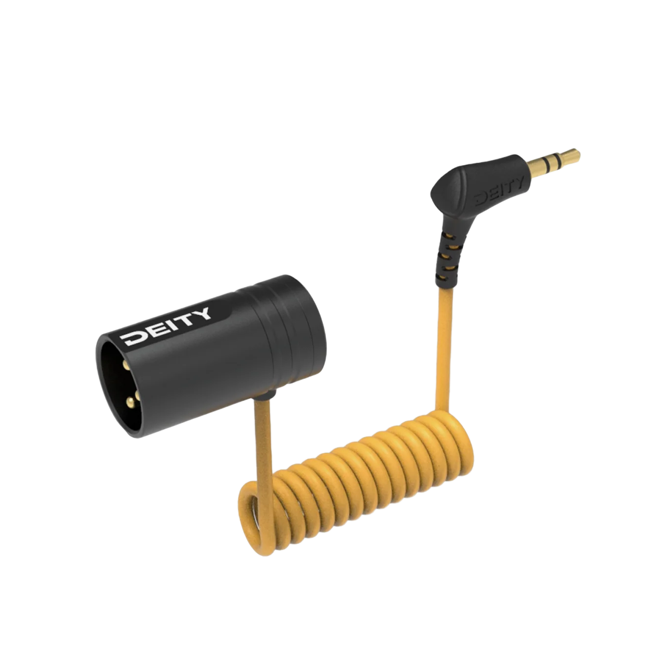 Use the Deity Microphones V-Link adapter cable to connect any 3.5mm equipped microphone to the XLR input of a camera without sacrificing audio quality or tidiness. This 12" coiled cable features low-profile, right-angled connectors—one 3.5mm TRS male mini plug for your microphone output and one 3-pin male XLR for your camera input—to keep your setup sleek. Additionally, it boasts noise-free conversion of 24/48 VDC phantom power from the camera to plug-in power (3 to 5V) for common video mics such as lavaliers and compact shotguns.
