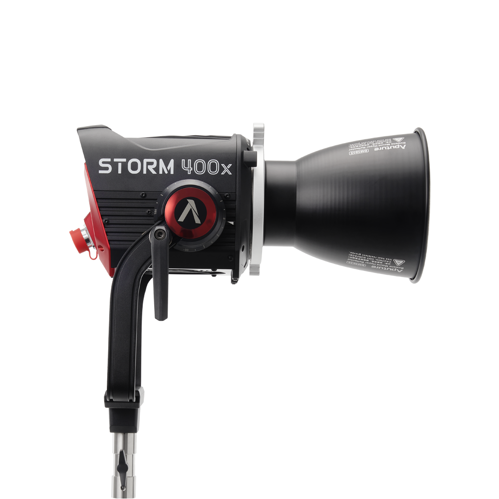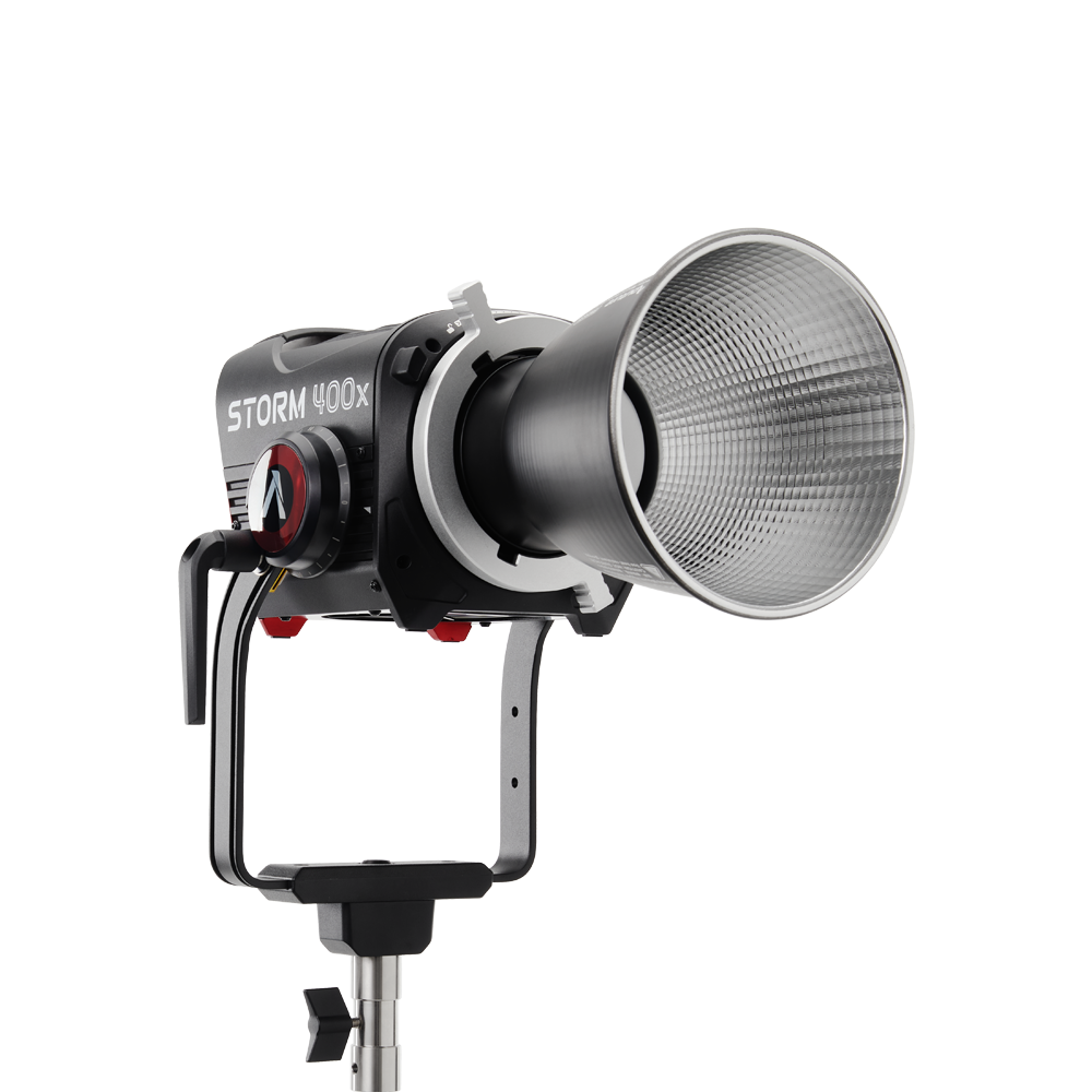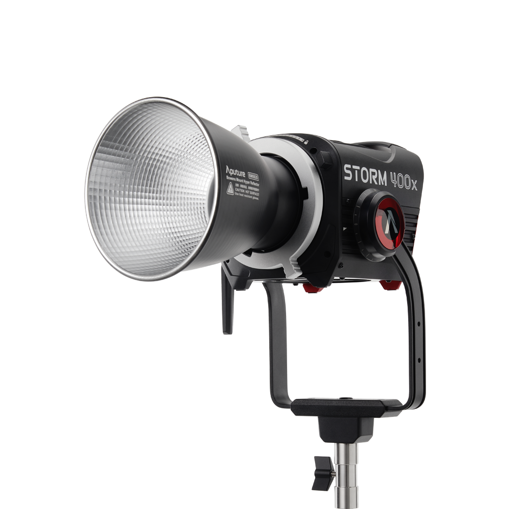 The Aputure STORM 400x utilizes the BLAIR (Blue/Lime/Amber/Indigo/Red) light engine, delivering the highest quality white light and greatest +/- green adjustability of any LED technology. The BLAIR light engine's indigo emitters enhance fluorescing materials like natural daylight and tungsten sources.